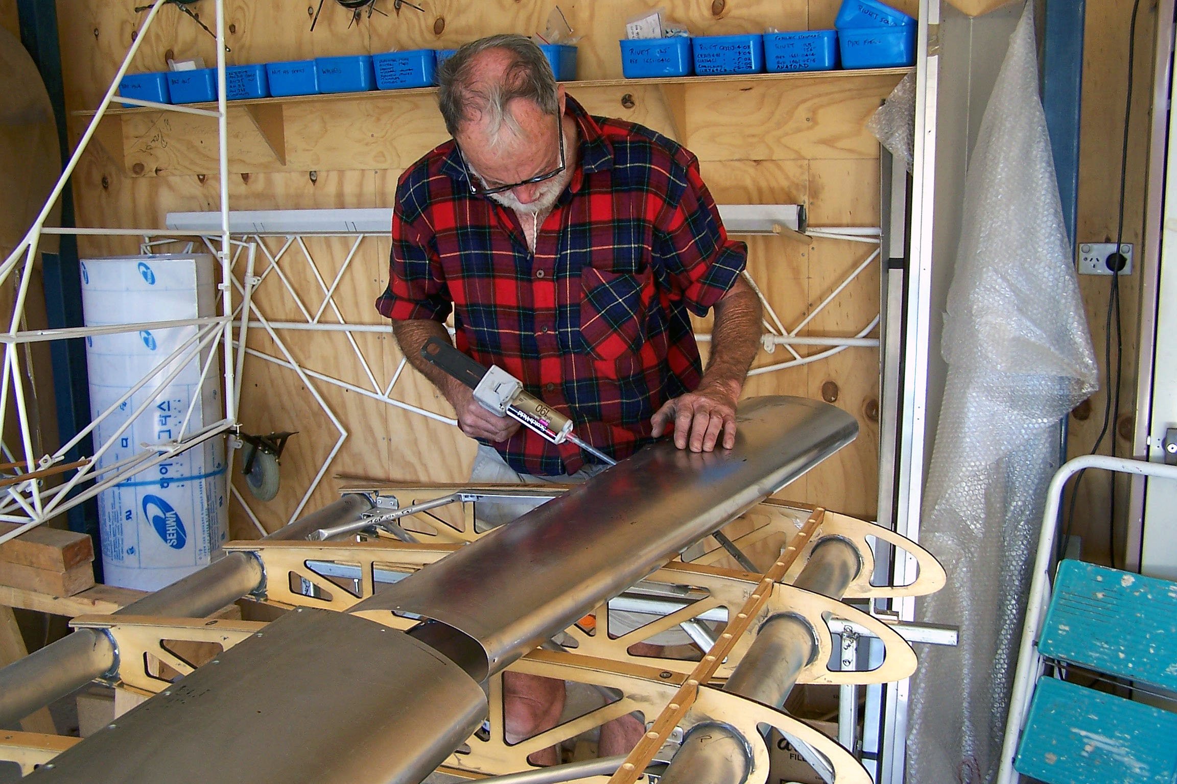 The Kit arrived on 8th April 2004 and in the garage attached to the house was where he spent many many hours building it.