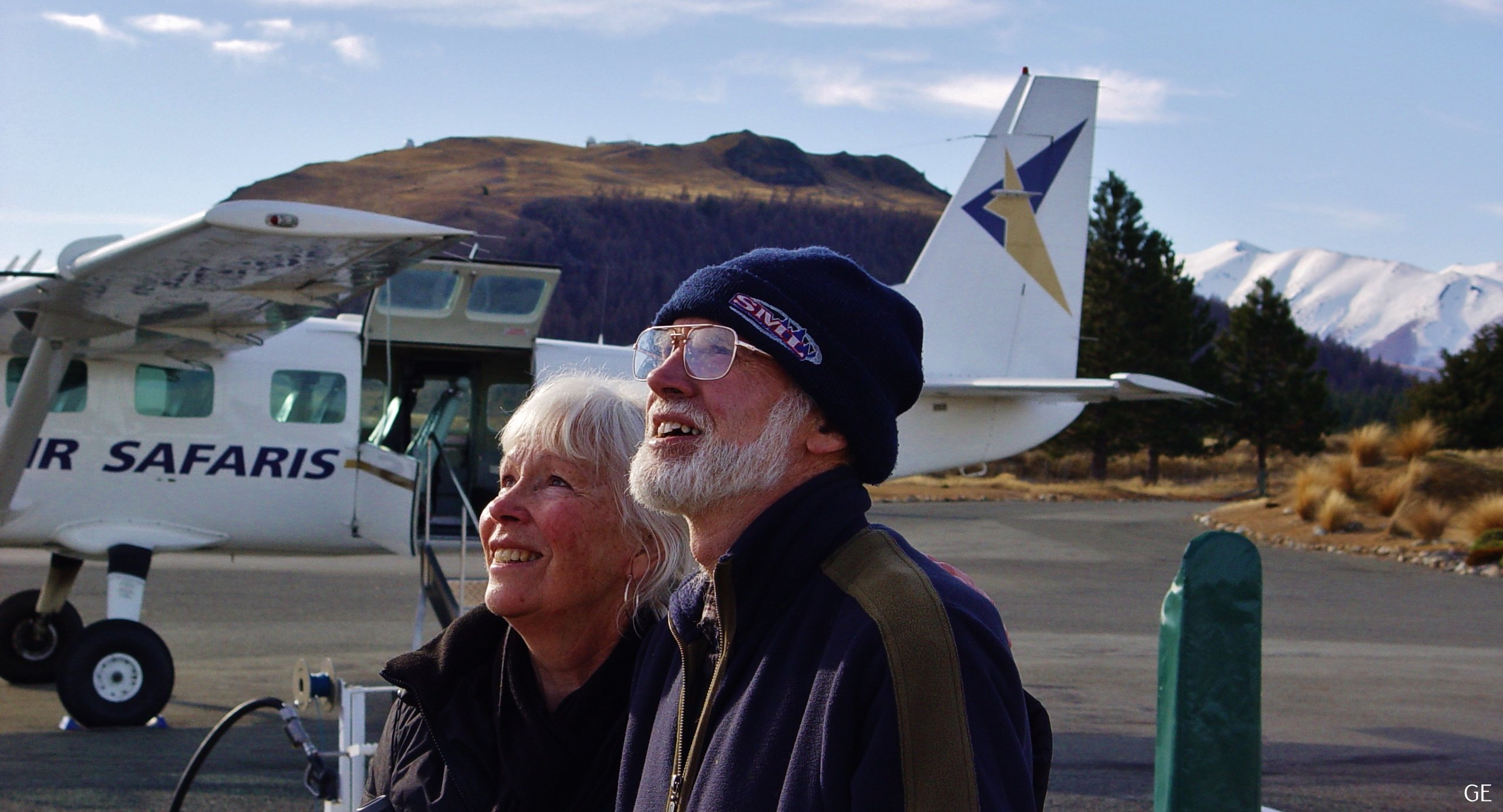 Sheila and Bill watching SUP take off for the first time with Test Pilot John Lindner in control.