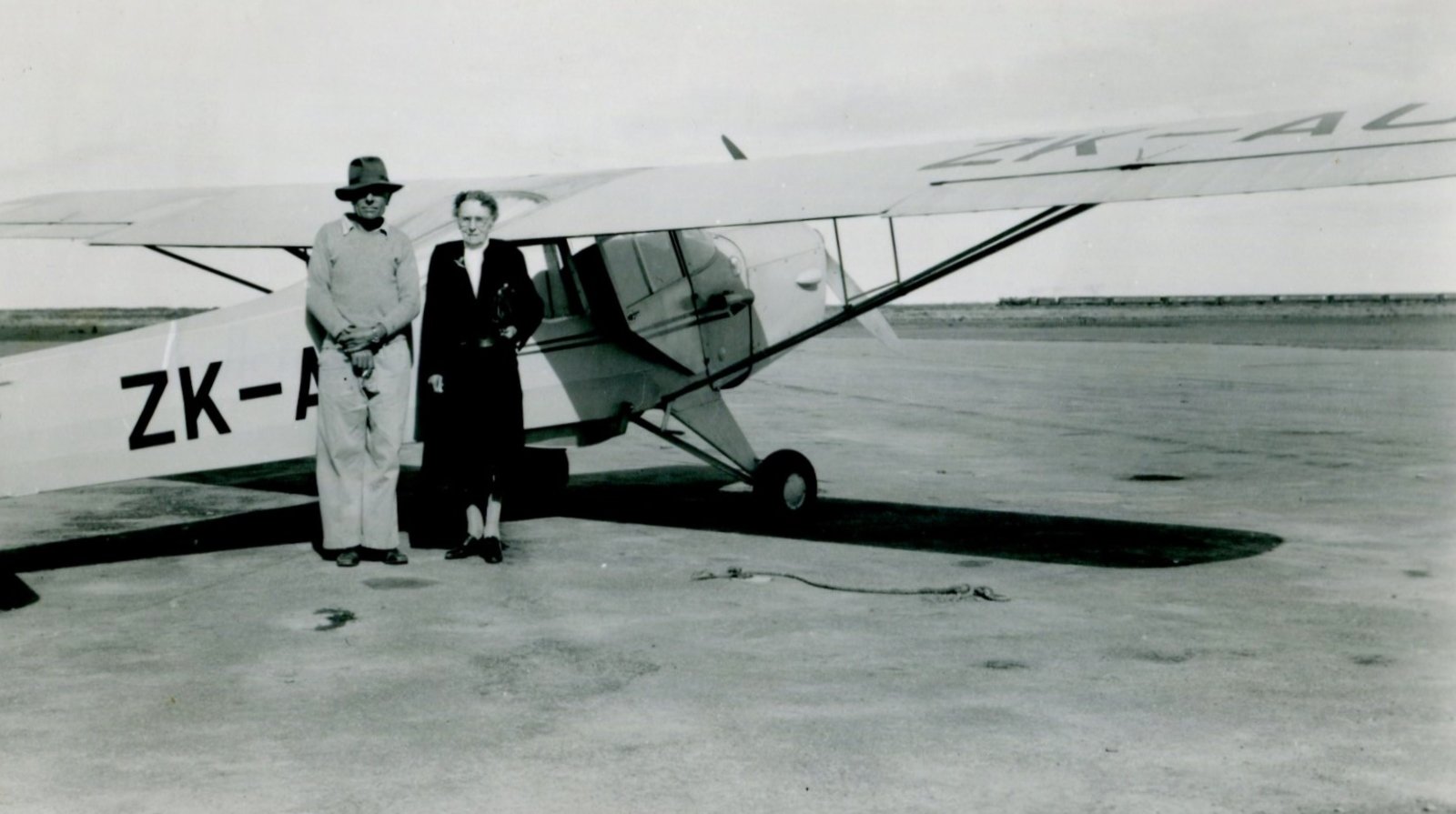 Gould Hunter-Weston and his mother at Levels Airport Timaru.