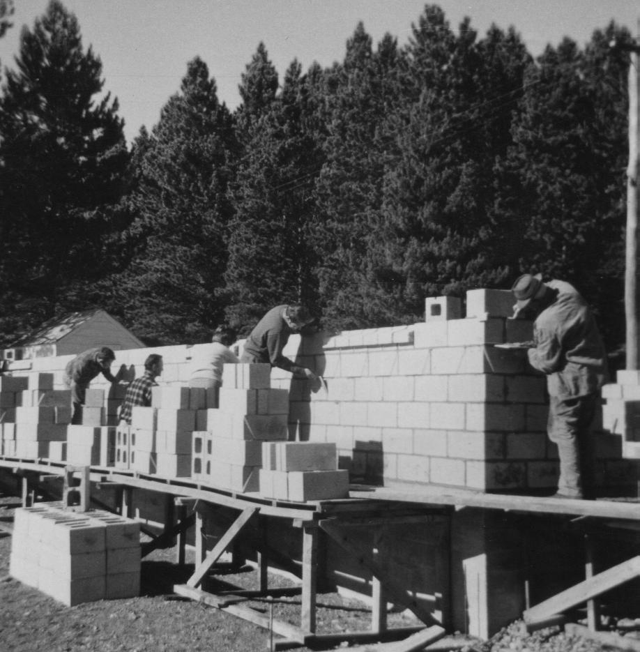 Dick Guard and Warren Bray placing reinforcing steel before the first pour
