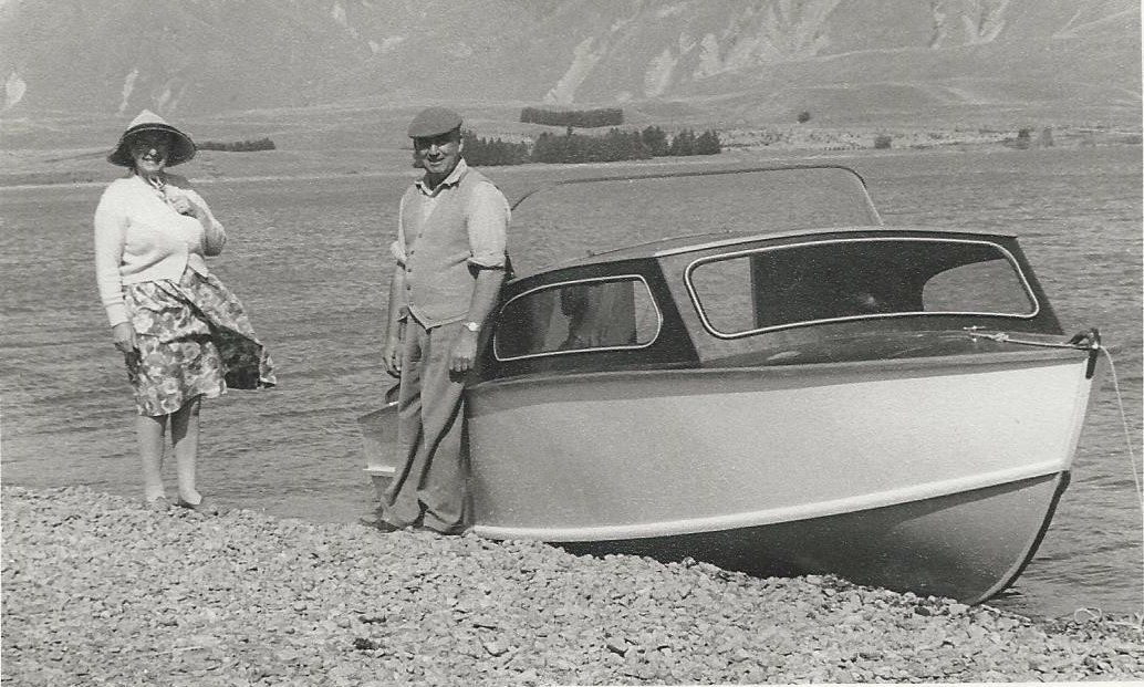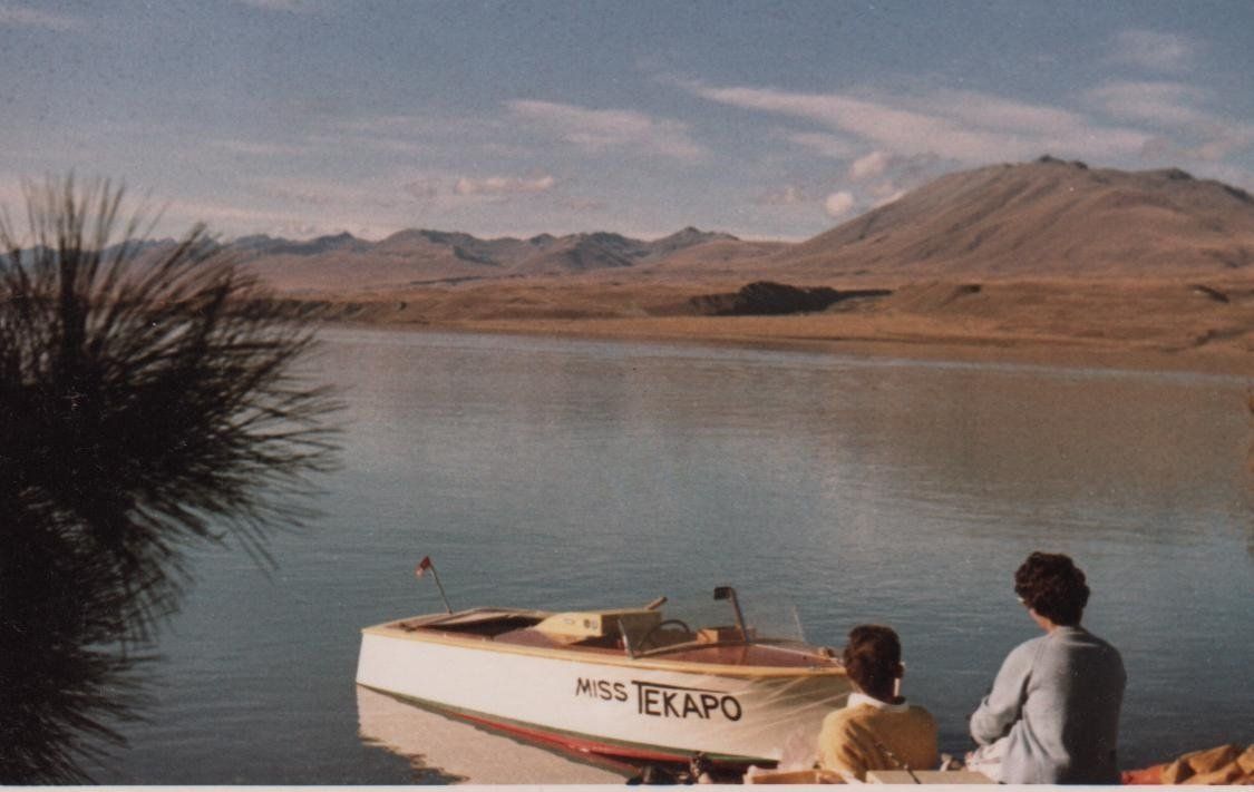 “Miss Tekapo” the 2nd boat built and owned by the Guard Brothers and Graeme Giddings it was powered by a Ford 10 and was launched at Lake Tekapo on 1st Feb 1959